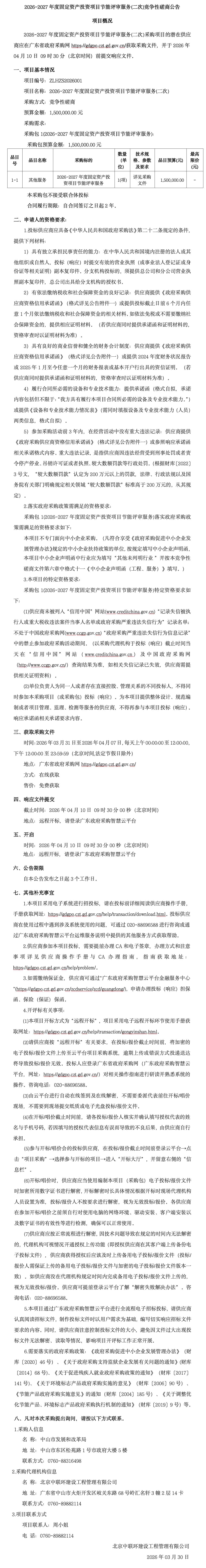 2026-2027年度固定资产投资项目节能评审服务(二次)竞争性磋商公告